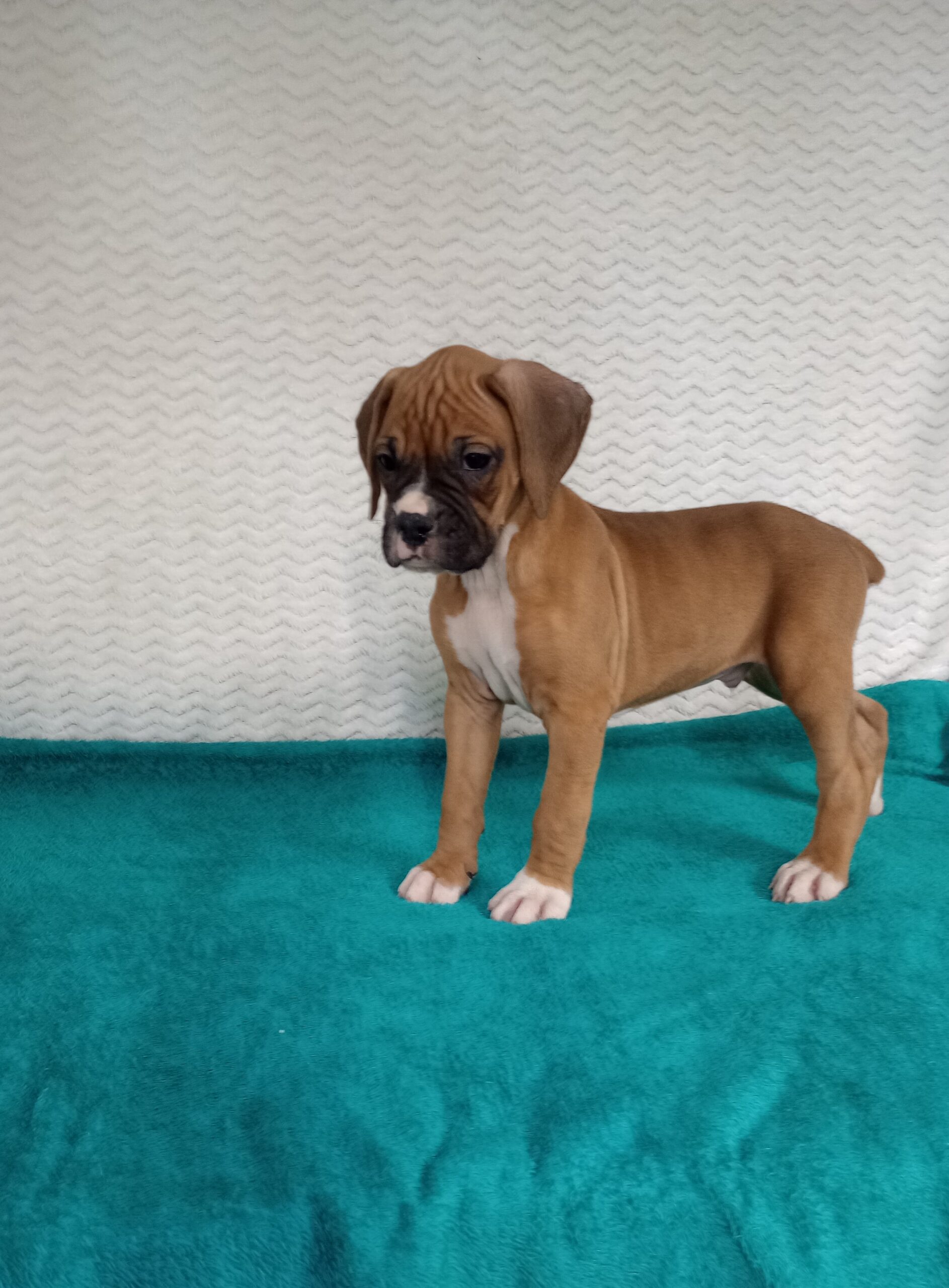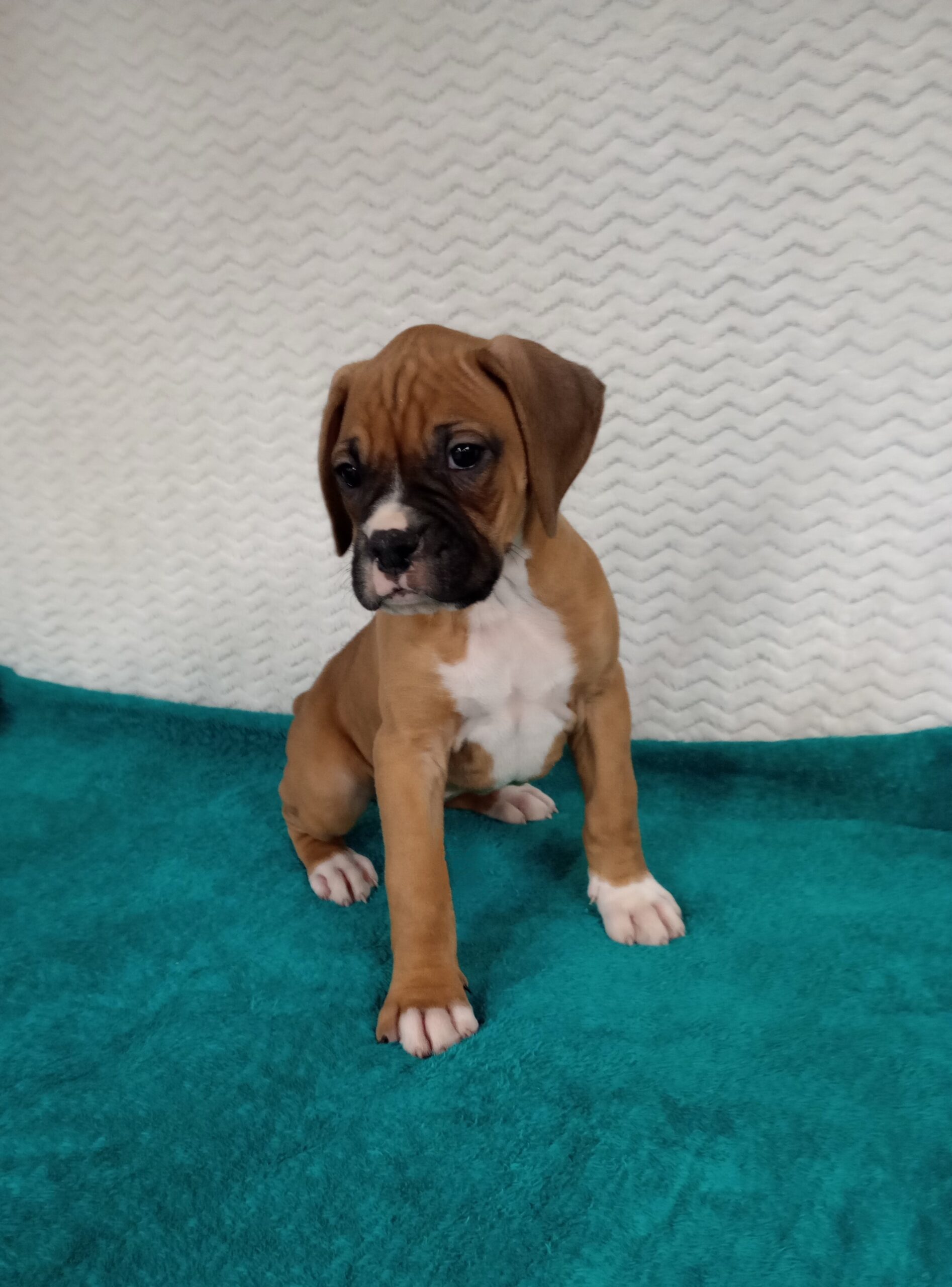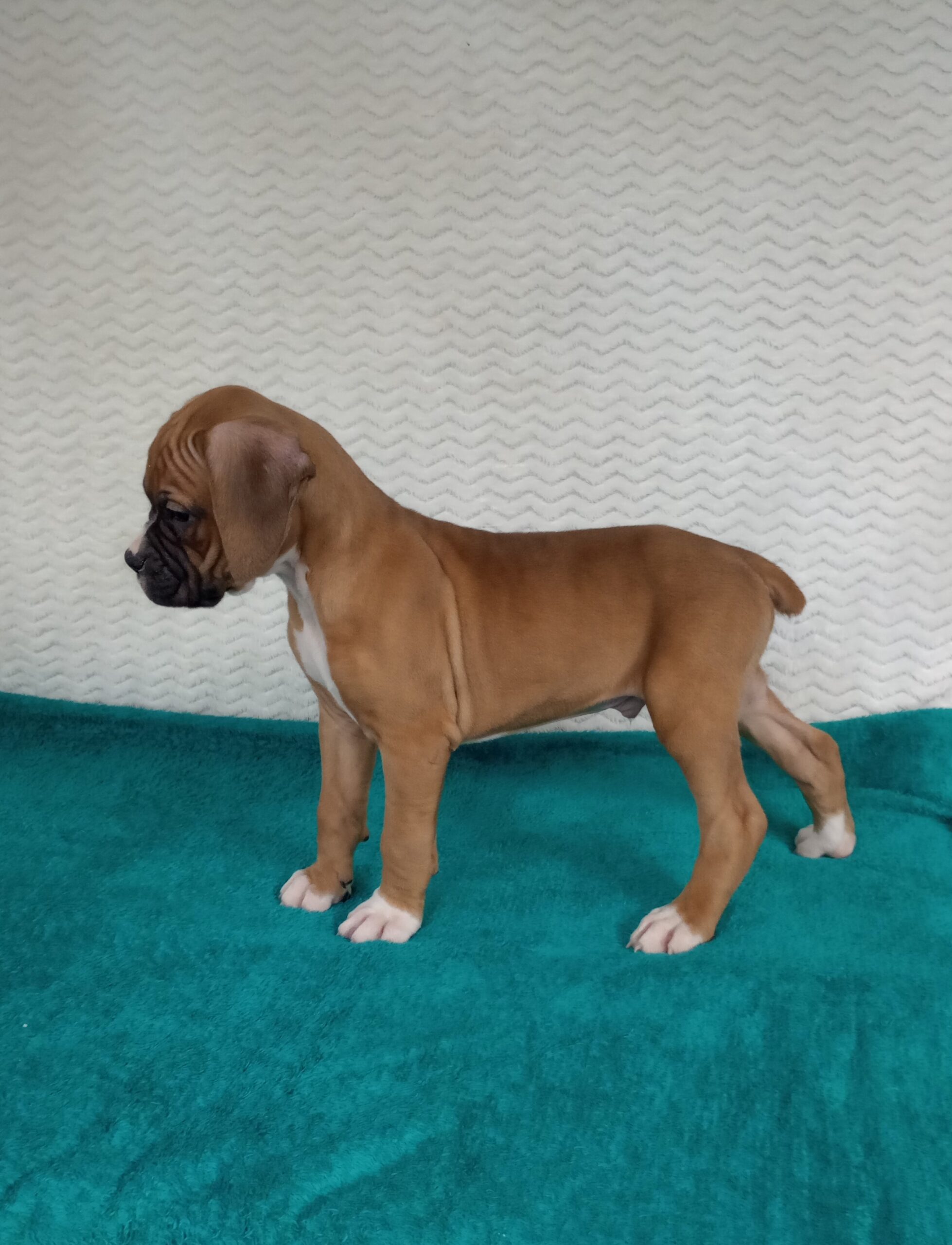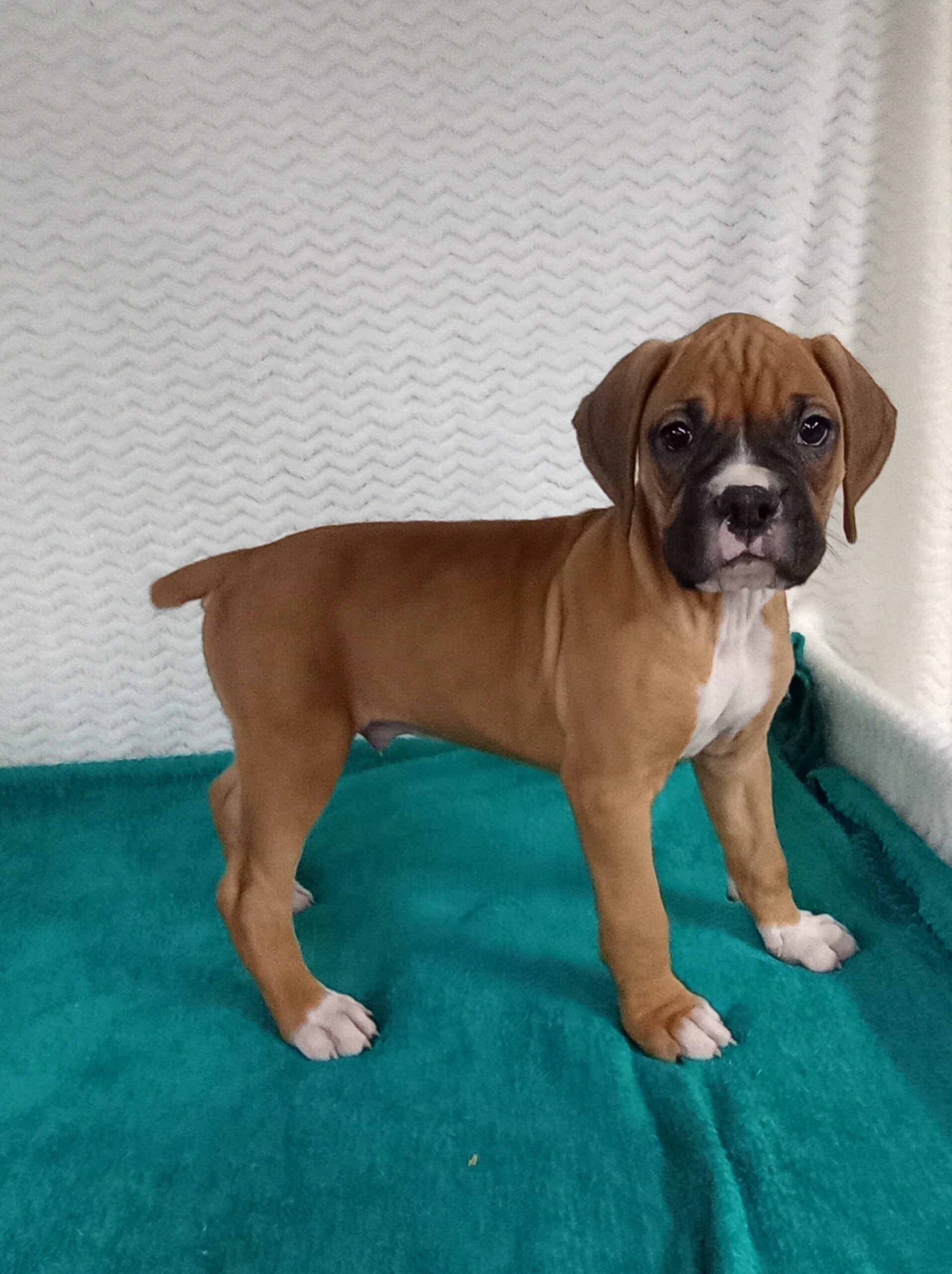 Mike is our boxer male he is very playful and full of energy. His vaccines and dewormer are up-to-date. He is microchipped and will go home with a one year health guarantee.